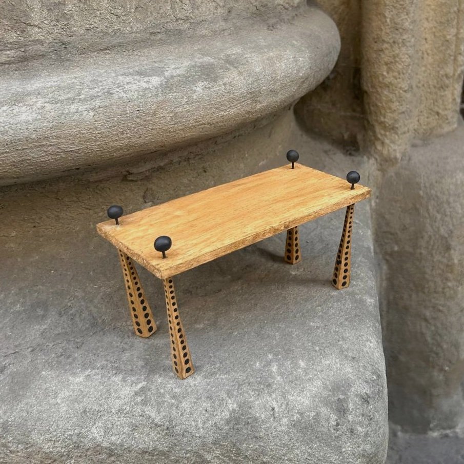 Dining Table. Oak wood and metal studs.